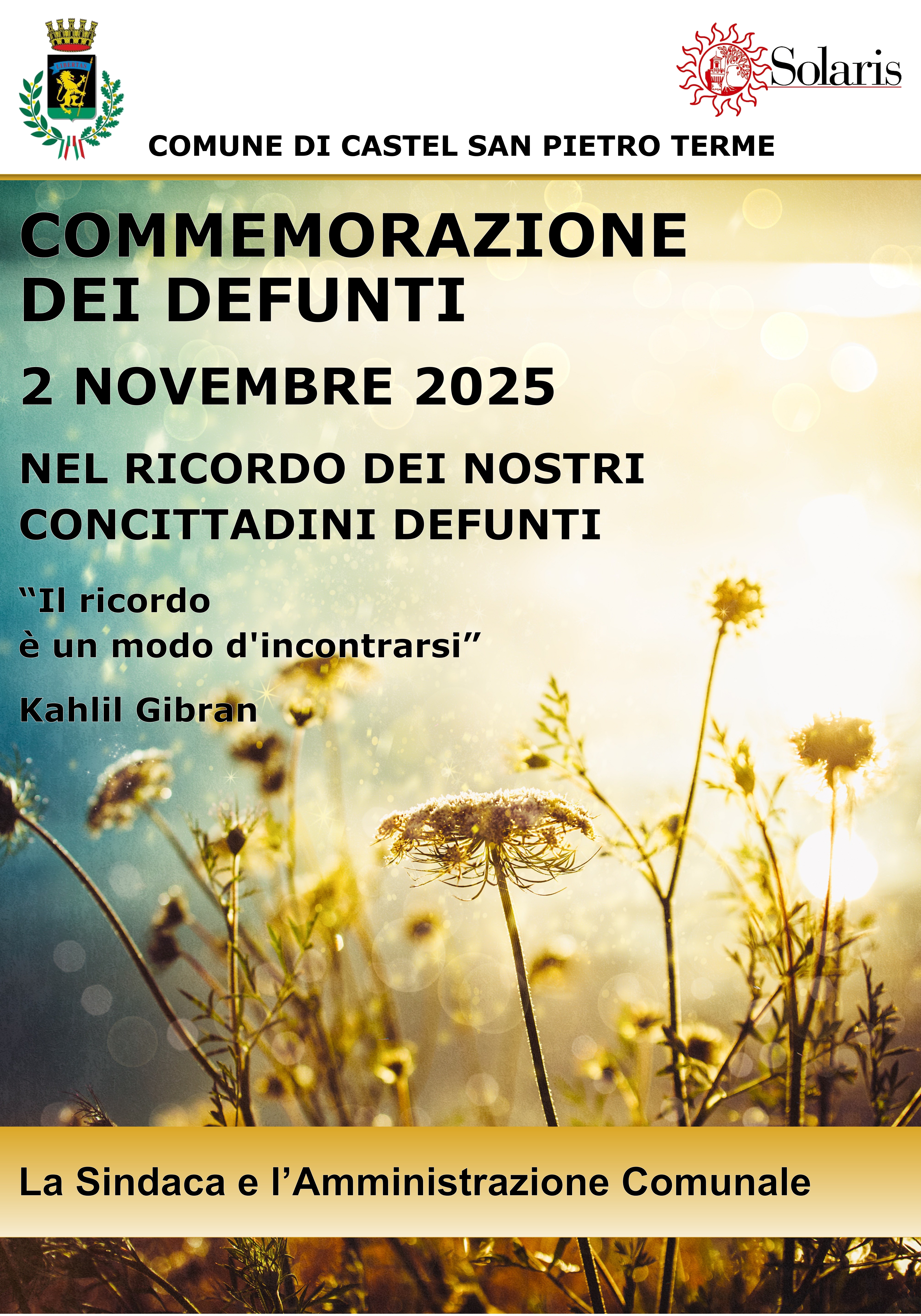 Si ricorda inoltre che, secondo l’orario invernale in vigore con l’ora solare, il Cimitero Capoluogo di Castel San Pietro Terme sarà aperto dalle ore 8:00 alle ore 17:00, mentre i cimiteri delle frazioni osserveranno l’orario 7:30 – 17:00.