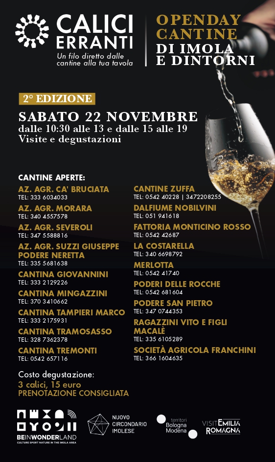 Il Nuovo Circondario Imolese nell’ambito del progetto PTPL, co-finanziato dalla Città Metropolitana di Bologna, organizza la Seconda Edizione di “Calici Erranti”.