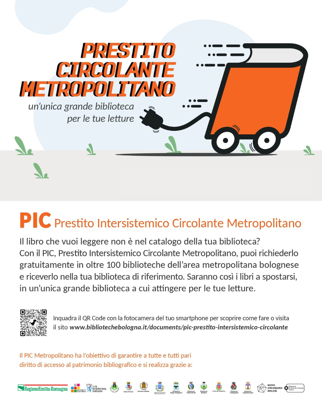 Il Prestito Intersistemico Circolante Metropolitano (PIC) è il servizio gratuito che consente agli utenti delle biblioteche di richiedere libri e altri documenti disponibili nella rete metropolitana, anche quando non sono presenti nella propria biblioteca. In questo modo sono i documenti a spostarsi, permettendo ai lettori di accedere a un patrimonio molto più ampio rispetto a quello disponibile nella singola sede.